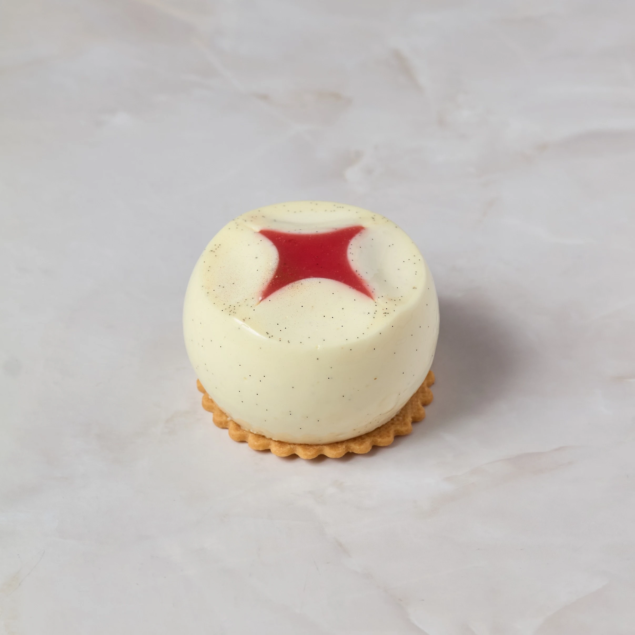إذاً ارتقِ بقائمة حلوياتك مع هذه التحفة الفنية متعددة الطبقات والتي تحقق التوازن بين خفة كيك الجينواز بالفانيليا التاهيتية وكثافة نكهة مربى الفراولة المحضر يدوياً. وهكذا ستوفر لك كل قطعة مغلفة بكريمة مسكاربوني المخملية ومزينة بغاناش الشوكولاته البيضاء مزيجاً من القوامات المتناغمة.
