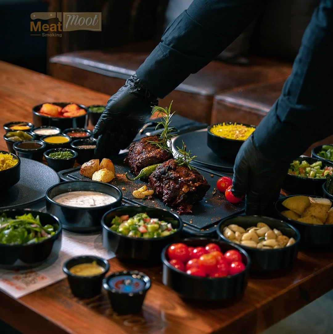 أصمت لفترة طويلة وأنا أستمتع بمشهد طبق اللحم المدخن المقدم من مطعم ميت موت والذي استغرق اعداده 16 ساعة من الطهي البطيء. هنا في ميت موت يجب عليك الغاء جميع مواعيدك اللاحقة والاستمتاع بكل لقمة والمضغ ببطء. فالمطعم القادم من إسطنبول إلى الرياض كان قد جلب معه تقنيات تدخين اللحوم المبتكرة. يستحق هذا المطعم الوقوف عنده والاستمتاع  بقطعة كبيرة من اللحوم المدخنة التي يمكنك اختيارها بنفسك.
